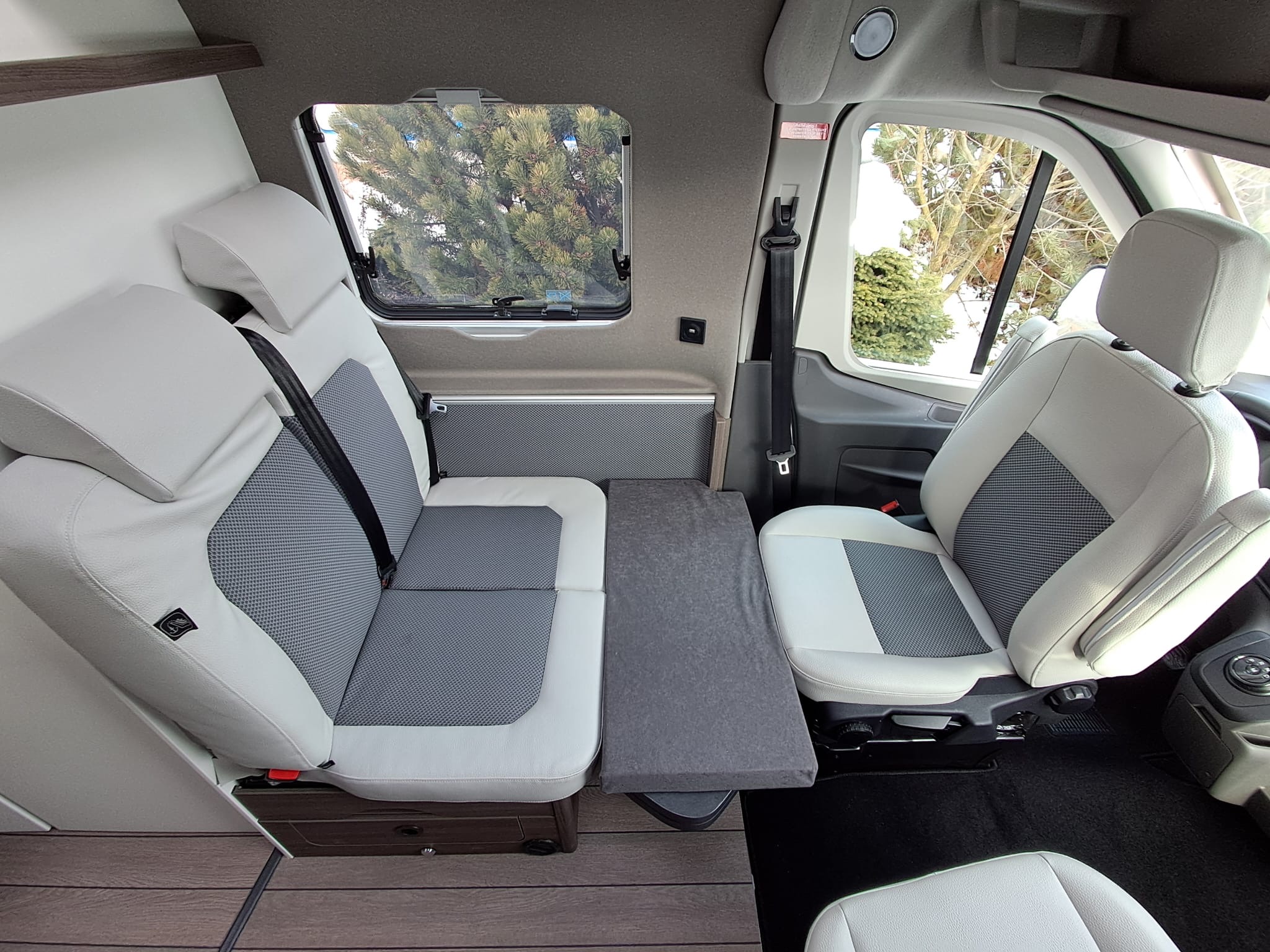 Pojedyncza grupa siedzeń z wiszącym stołem i obrotowym przedłużeniem stołu